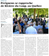 Périgueux en Périgord et Rivière-du-Loup au Québec, dans la région du Bas Saint-Laurent, bordée par le célèbre fleuve éponyme, sont désormais villes jumelles.